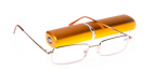 Готовые плюсовые очки в оправе из золотистого металла. Доступная цена и компактный футляр в комплекте.